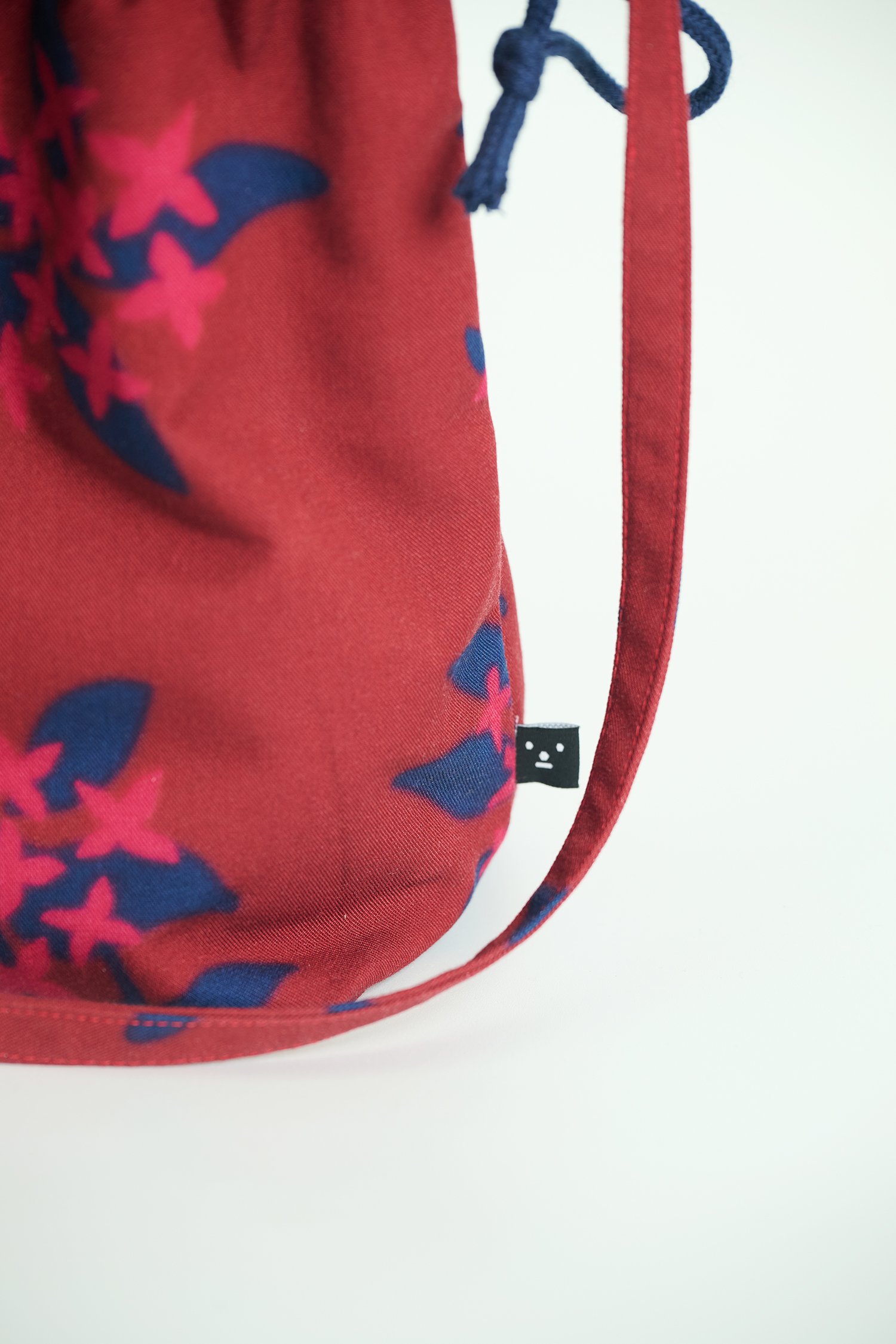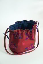 Small sized drawstring bag, with gussets and a pocket inside